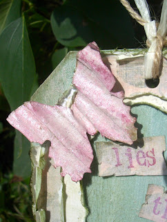 The gorgeous, fine metal mesh comes from the fabulous Linda Coughlin's Funkie Junkie Boutique, and came wrapped in the corrugated card (which got a rough coat of sand acrylic just on the raised edges) - genius packaging going straight into action, and giving a lovely grungy bit of texture to the tag.