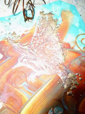 And I added in one of the regular acrylics - grabbing, of course, my favoured Indian Turquoise - and just randomly squiggling the colours onto the tag with my fingers.