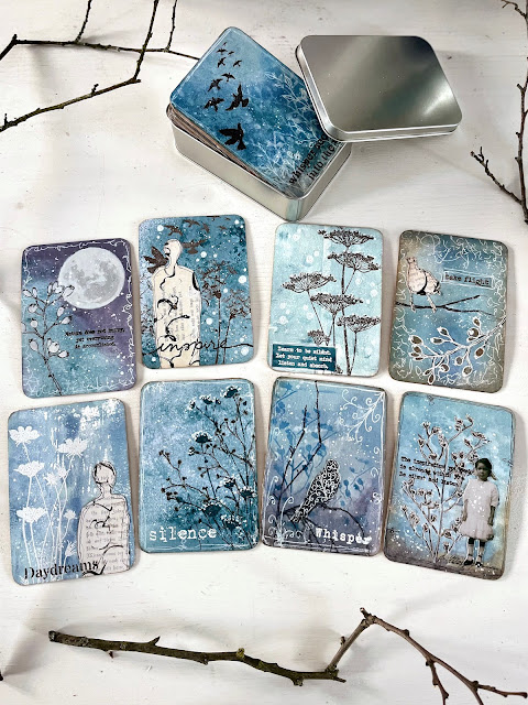 January in Fodder School has been glorious... and that's not an adjective I often apply to January! The wonderful Megan Quinlan shared some classes which were definitely up my street, and I had a fabulous time shopping my stash for stencils and stamps which had been neglected for far too long, as well as current favourites. Here's the inspirational deck that emerged on my craft table...